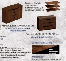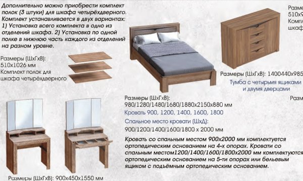 Размер спального места 90*200 / 120*200 / 140*200 / 160*200 / 180*200