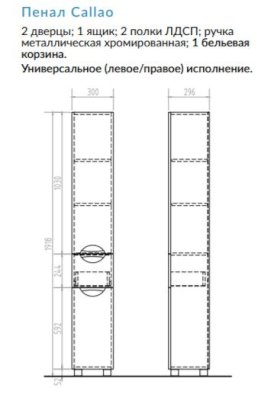 Пенал Callao с бельевой корзиной (Виго) – товар доступен к покупке в интернет-магазине yakutskiy-dommebeli.ru. Цена – 14 851 руб. без учета доставки. Стоимость дополнительных услуг и сроки получения мебели уточняйте у менеджера. Возможен безналичный расчет, оплата по карте на сайте.