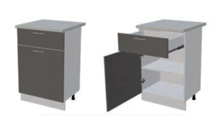 Глубина нижних шкафов без учета столешницы: 444 мм, с учетом столешницы 600 мм