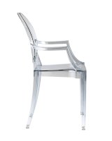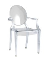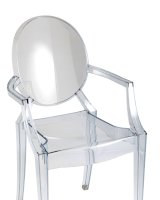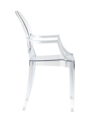 Дизайнерский стул Victoria Ghost изготовлен из поликарбоната. Экологически чистый и долговечный материал обладает хорошей прочностью, термостойкостью и малым весом. Стул Victoria Ghost переживет не одно десятилетие, сохранив свои качества и красоту. Высокая спинка, просторное сиденье и подлокотники обеспечивают комфортную посадку. Современное дизайнерское решение в виде отсутствия цвета позволяет вписать стул в любой интерьер, не перегружая пространство. Несмотря на хрупкий внешний вид, стул Victoria выдерживает нагрузку в 150 кг.