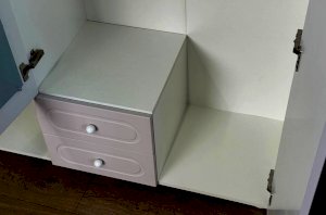 — слева расположены полки для сложенной одежды, коробок или игрушек;