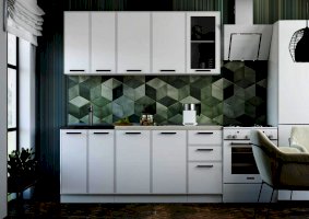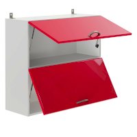 Верхние навесные шкафы имеют два размера по высоте – 706 мм и 914 мм. В модулях имеющих высоту 703 мм расположено по одной полке, а в модулях имеющих высоту 914 мм расположено по две полки.