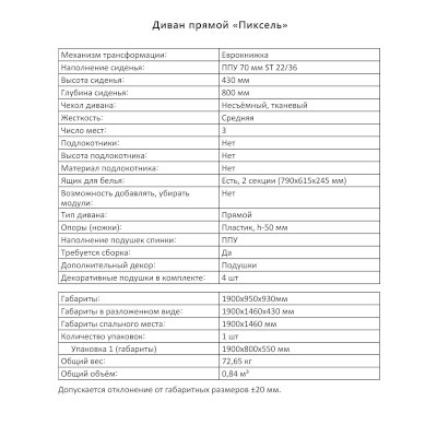 Диван Пиксель (Аквилон) – товар доступен к покупке в интернет-магазине yakutskiy-dommebeli.ru. Цена – 30 317 руб. без учета доставки. Стоимость дополнительных услуг и сроки получения мебели уточняйте у менеджера. Возможен безналичный расчет, оплата по карте на сайте.