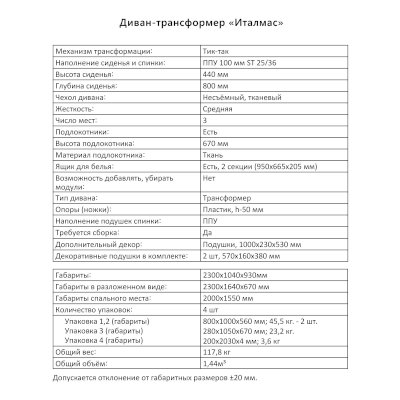 Диван-трансформер Италмас (Аквилон) – товар доступен к покупке в интернет-магазине yakutskiy-dommebeli.ru. Цена – 73 394 руб. без учета доставки. Стоимость дополнительных услуг и сроки получения мебели уточняйте у менеджера. Возможен безналичный расчет, оплата по карте на сайте.
