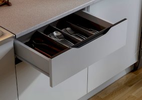 Кухонный гарнитур Кайли — практичный комплект с интегрированными ручками в современном стиле.
